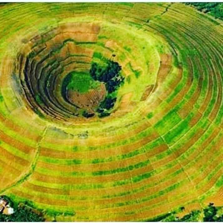 The term 'caldera' comes from the Latin language and means 'cooking pot.' It is formed by the collapse of part of the volcano into the empty magma chamber created during a large volcanic eruption. If enough magma is erupted, the emptied chamber will not be able to support the weight of the volcanic mountain created, fractures will form around the edge of the chamber, usually in a roughly circular shape. As the magma chamber empties, the center of the volcano within the ring fractures begins to collapse within, forming a caldera. The walk to the caldera is mild hill climb. The views on top are breathtaking. There are gardens inside the caldera and local people have even started planting trees. The locals also believe that the caldera was formed as a result of volcanicity, there are no myths around the formation although they do not explain in good detail. That the hill used to be covered by forest and inhabited by antelope species but the forest was cut down to pave way for crop farming. The site is good for a stop for a rest area with a simple shelter, a urinal and some drinks (water, juice, coffee and tea). It is also a picnic site where people spend time and have packed lunch as they listen to the stories.